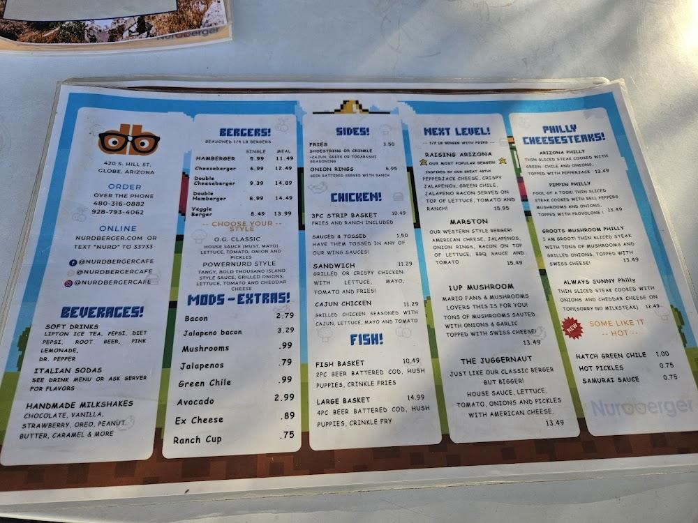 Welcome to Nurd Berger, Globe's premier burger joint located at 420 S Hill St. Known for its vibrant ambiance and excellent café offerings, Nurd Berger serves a delightful range of traditional and simple dishes, making it a favorite spot for lunch, dinner, or a quick snack. Enjoy our popular cheeseburgers and fries on our spacious patio, or opt for convenient takeaway and contactless delivery options. With accessible seating and free parking, we cater to everyone, including families and students. Join us for a unique dining experience where great food meets a relaxed atmosphere. Reservations are accepted!
